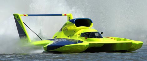 The model: After getting the boat from Mark Bryan repaired some structural and paint damage to the cowl, installed new running gear, added more ride pad, and installed a new div 3 skid fin. So far so good. Now he's concentrating on getting used to driving a very fast boat in a very fast division of boats! He's well on his way.